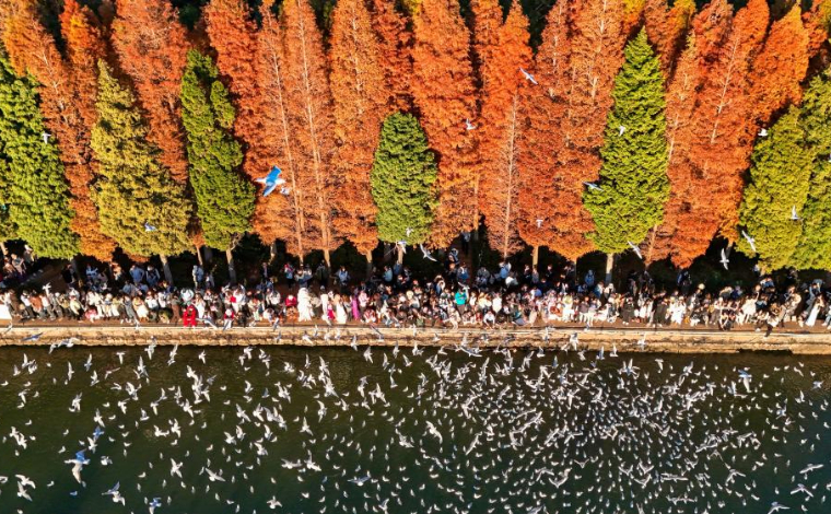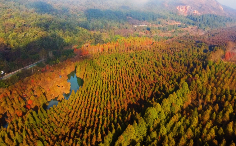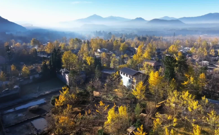 当下正值银杏最佳观赏期,江东村中,当晨雾散去、日光漫洒时,数万株银杏与晨光共镀金辉。
