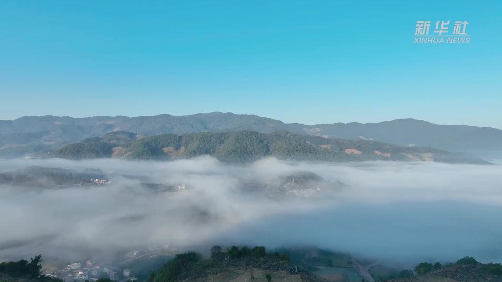 近日,云南省墨江哈尼族自治县孟弄乡连绵山峦间,云海与青山相依相融。