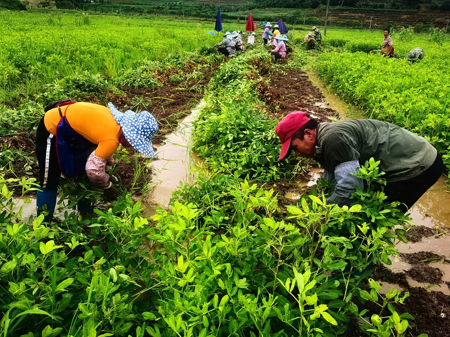 近日,云南省普洱市孟连傣族拉祜族佤族自治县景信乡的花生喜迎丰收,村民们分工明确,拔苗、清洗、摘收……随着一株株花生苗连根拔起,一串串、一粒粒饱满的花生破土而出。花生种植有效促进了景信乡群众增收,助力乡村振兴。