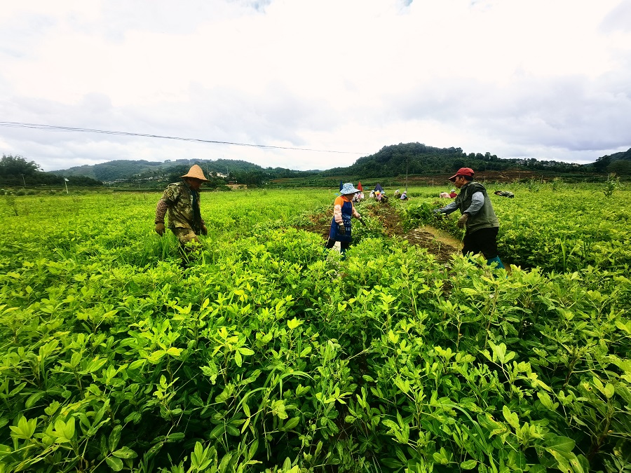 村民们在花生地忙碌(7月13日摄)。许燚欣 摄