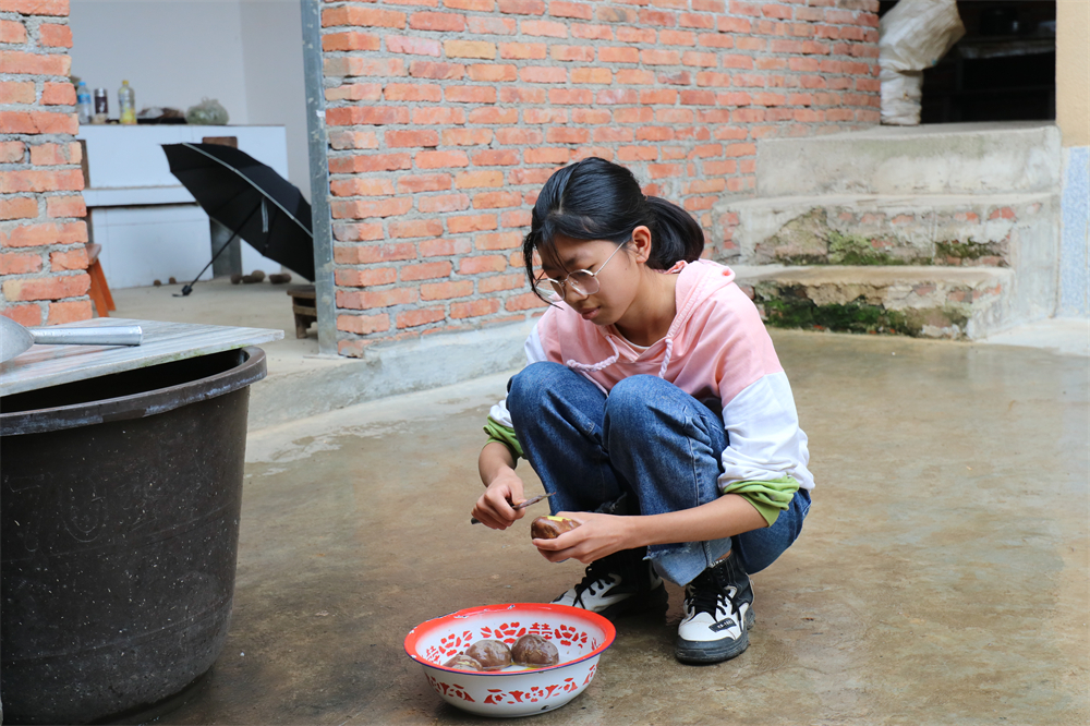 女儿马曾于在家里洗菜(7月11日摄)。李志旭 摄