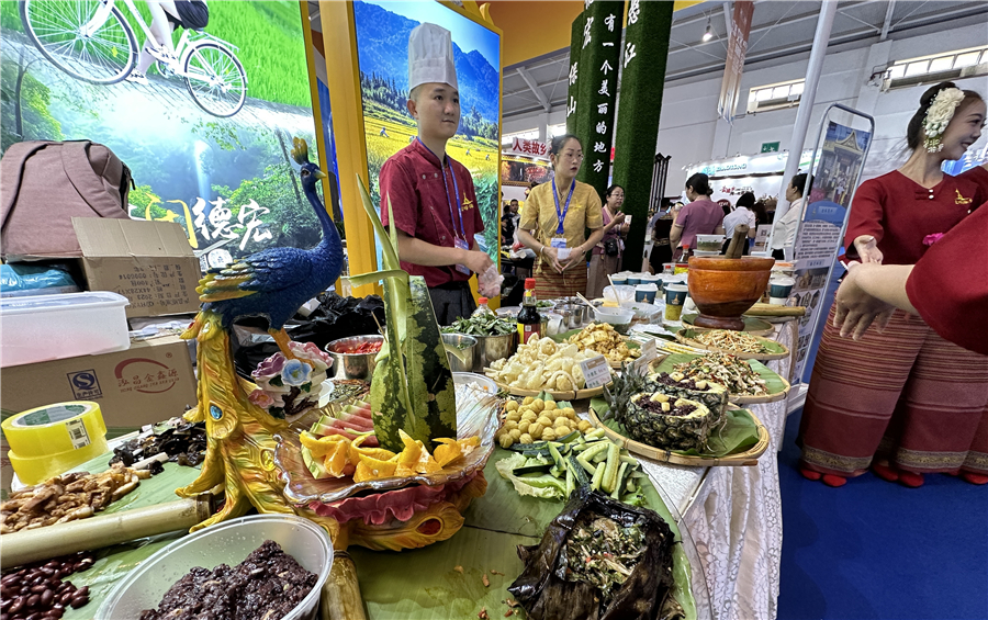 日前,第7届中国—南亚博览会在云南昆明开幕。在高原特色现代农业馆的德宏傣族景颇族自治州展位,众多绿色农产品吸引了参观者驻足关注。