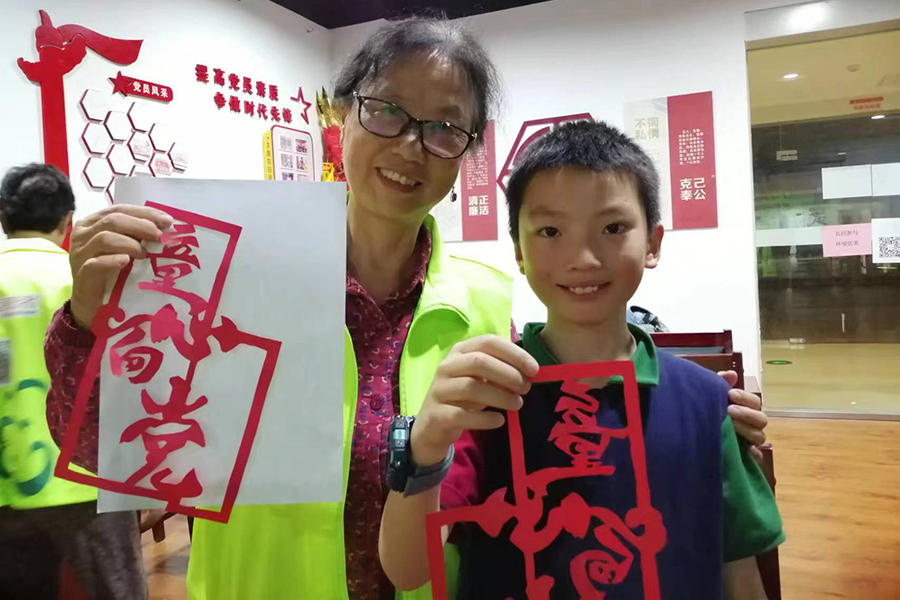 暑期公益培训班开设的剪纸课程(8月20日摄)。碧潭社区 供图