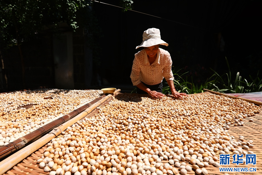 入秋以来,云南省腾冲市固东镇江东社区银杏村的3万余株银杏树果实逐渐成熟,村民们忙着采收、淘洗、翻晒,供应市场需求。