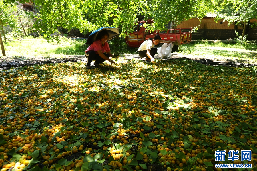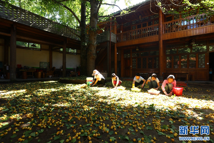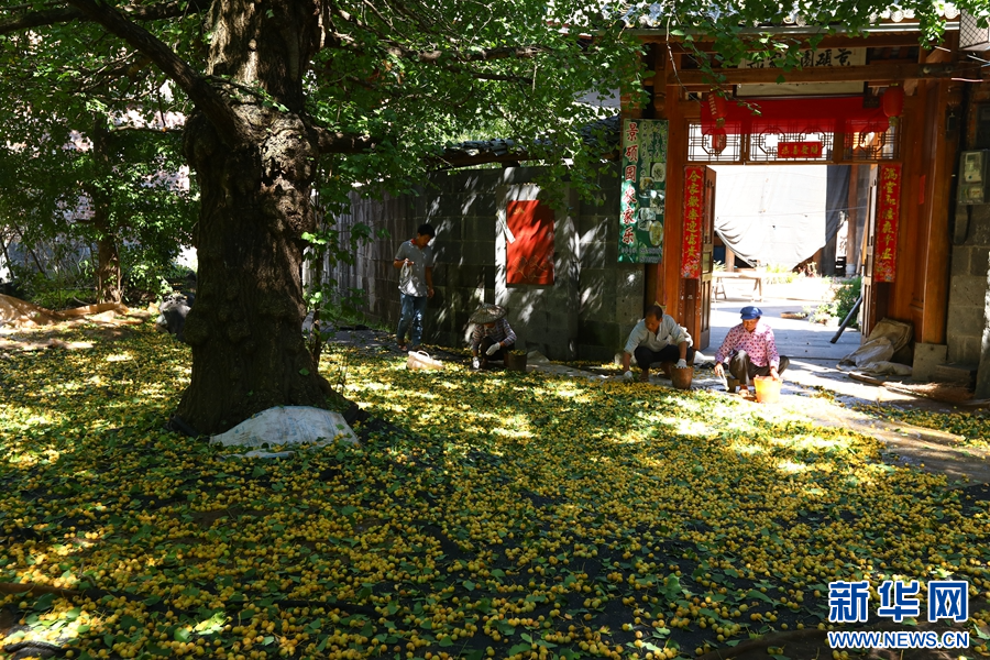 村民正在采收银杏果(9月3日摄)。新华网发(龚祖金 摄)