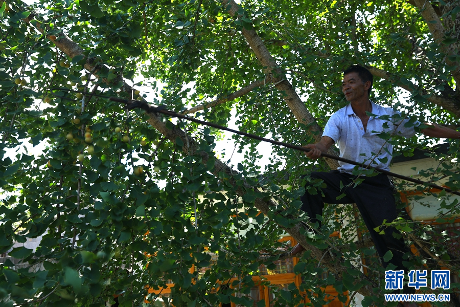 村民采摘银杏果(9月3日摄)。新华网发(龚祖金 摄)