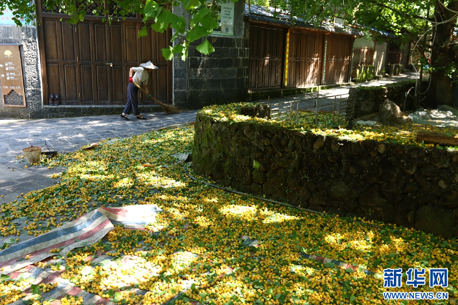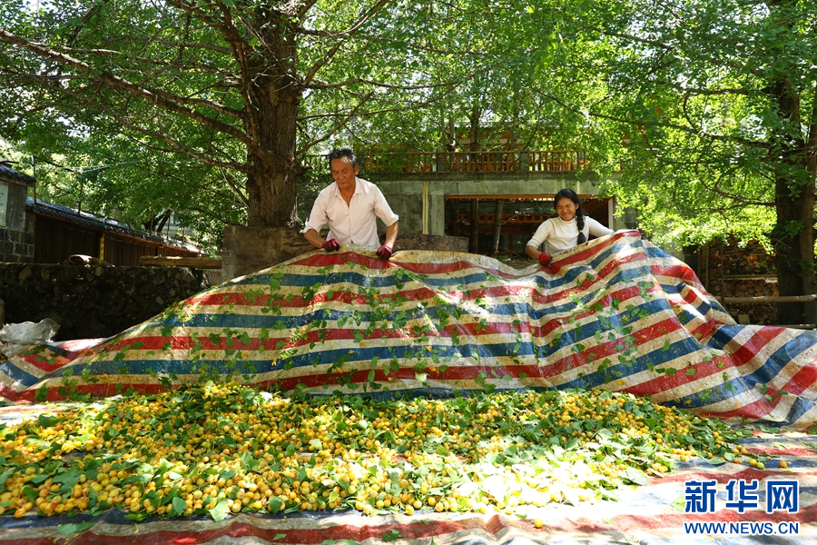 村民晾晒银杏果(9月3日摄)。新华网发(龚祖金 摄)