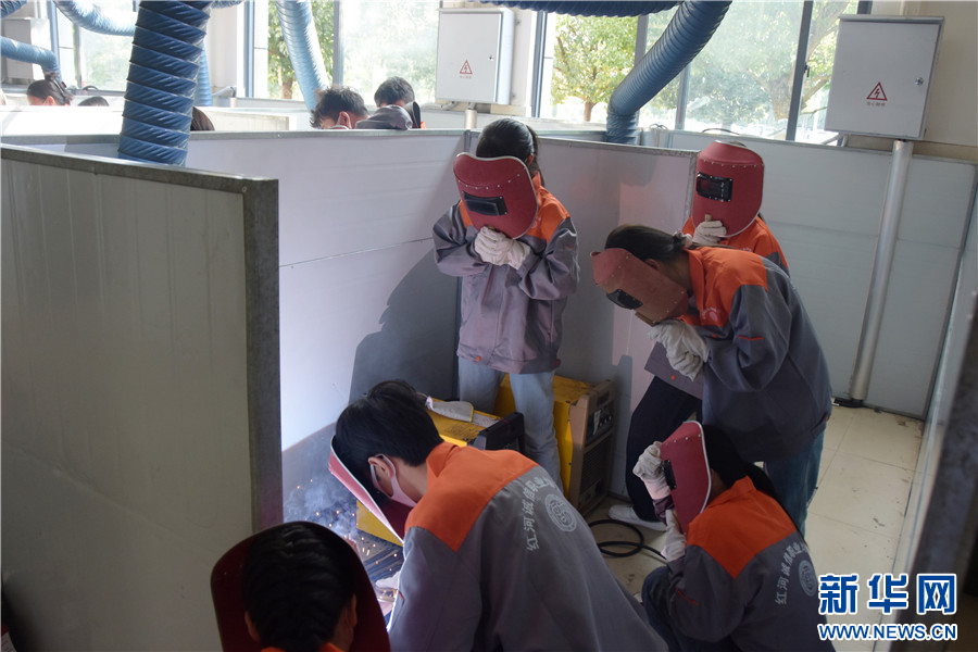 培训中,学员学习手工电弧焊课程(10月22日摄)。新华网发(薛莹莹 摄)