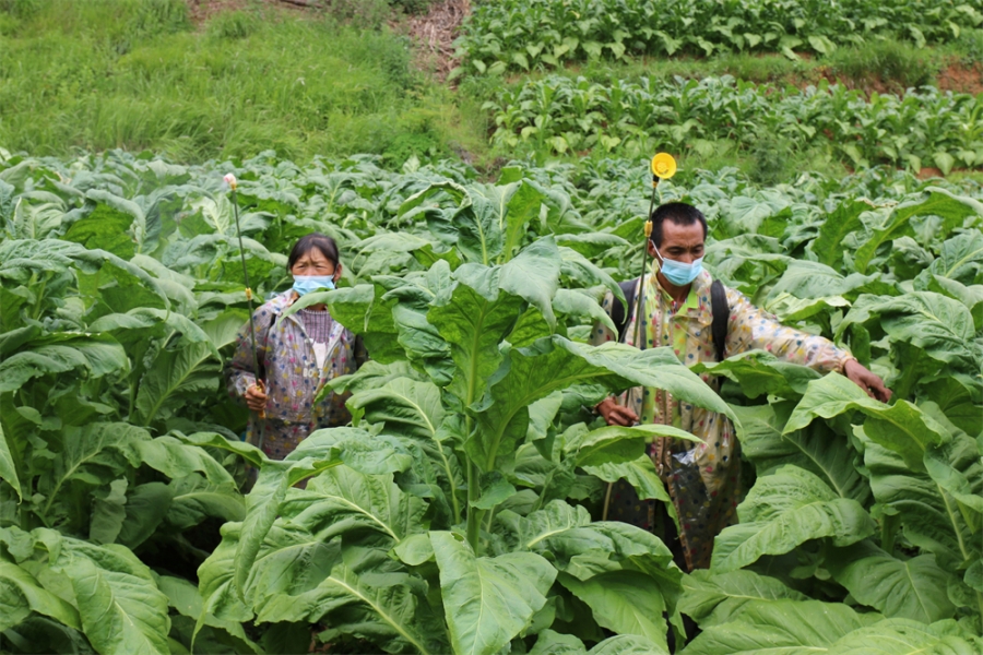 王自楼夫妇在为烤烟施叶面肥(7月28日摄)。李志旭 摄