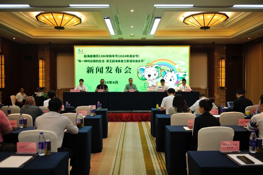 勐海县傣历1386年新年节(2024年泼水节)“有一种叫云南的生活·茶王勐海勇者之家清凉泼水节”新闻发布会现场(4月13日摄)。供图