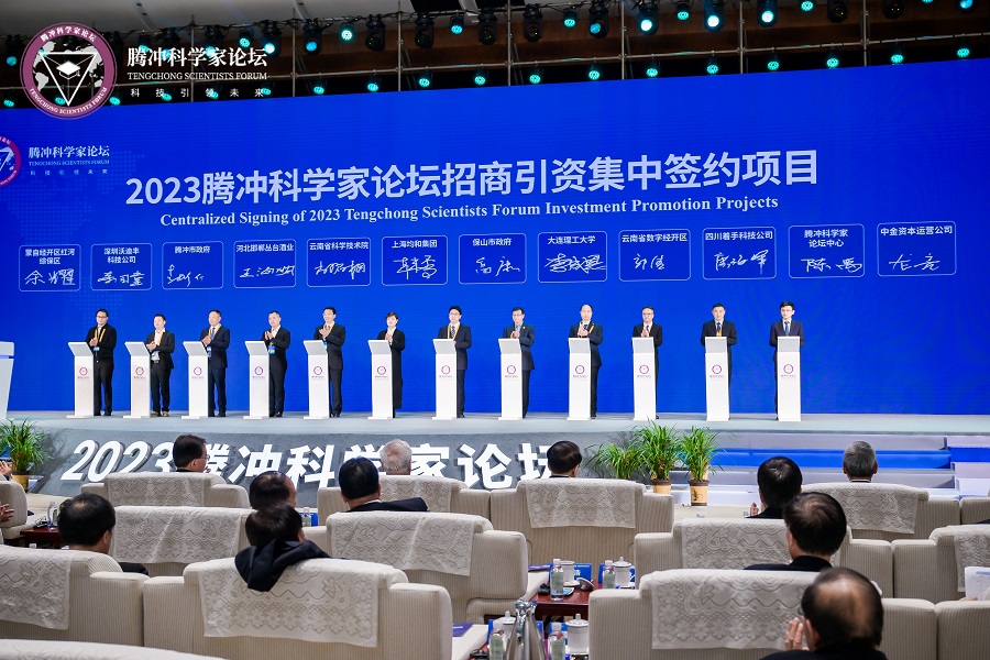 2023年腾冲科学家论坛招商引资集中签约项目(资料图)。腾冲市委组织部 供图