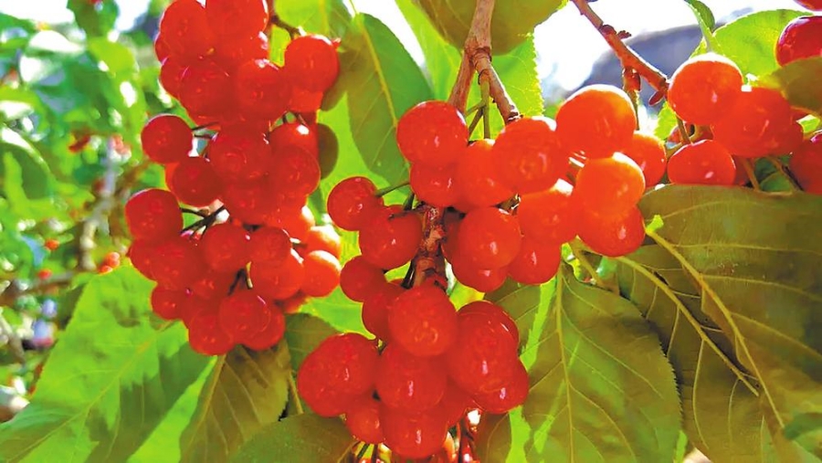 迷马拉村樱桃箐昼夜温差大,樱桃树栽种在半山坡的梯田上,阳光充足、土质适宜,结出的樱桃光洁饱满、玲珑剔透,广受消费者好评。