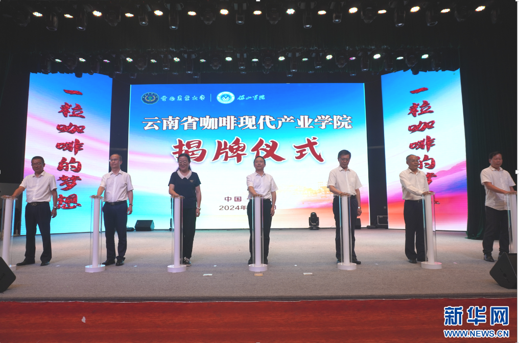 新华网昆明6月22日电 6月20日,云南省咖啡现代产业学院在共建单位保山学院揭牌。揭牌仪式以“一粒咖啡的梦想”为主题,在歌舞表演《咖啡谣》中拉开序幕。