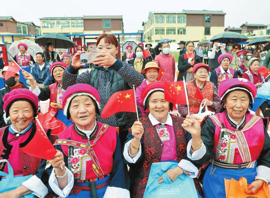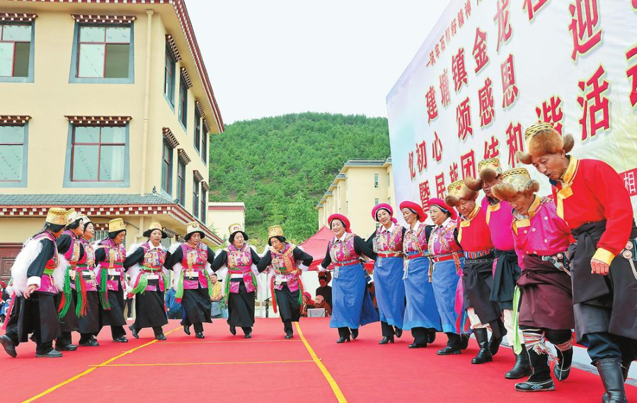 “七一”前夕,香格里拉市建塘镇金龙社区开展“迎七一·和谐运动会”活动,社区党员与群众一起唱红歌、跳锅庄,开展跳绳、拔河等形式多样、内容丰富的民族运动会活动,热情讴歌党的光辉历程和伟大成就,唱响民族团结主旋律。(记者 黄兴能 摄)
