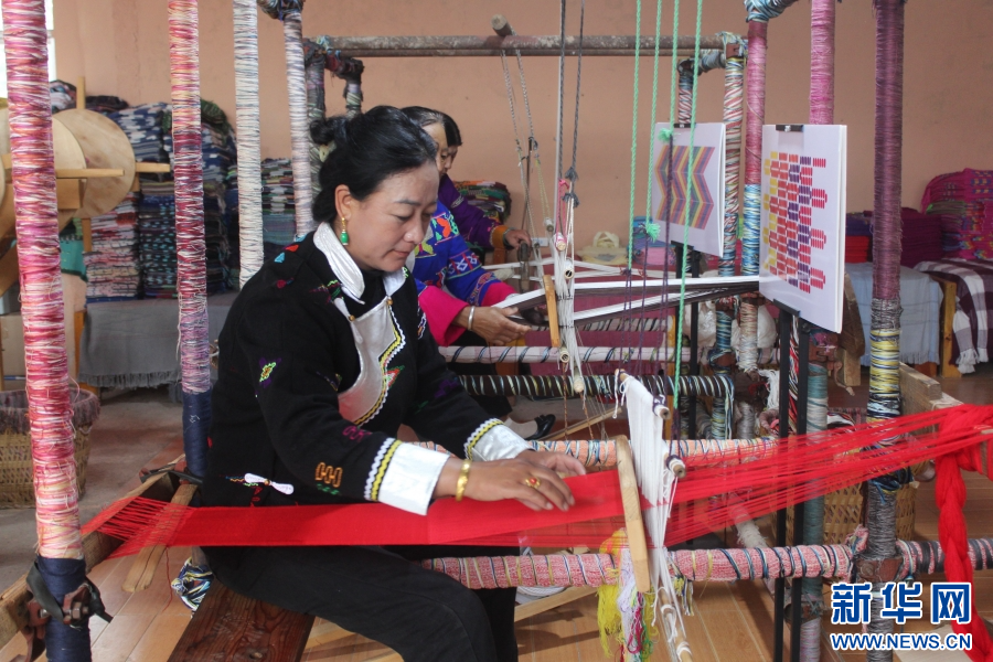 瓦拉壁村村民正在进行编织工作(7月25日摄)。新华网发 和新兰 摄
