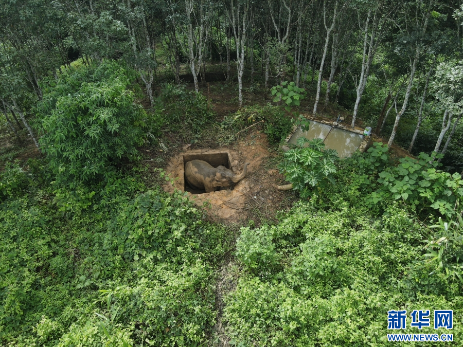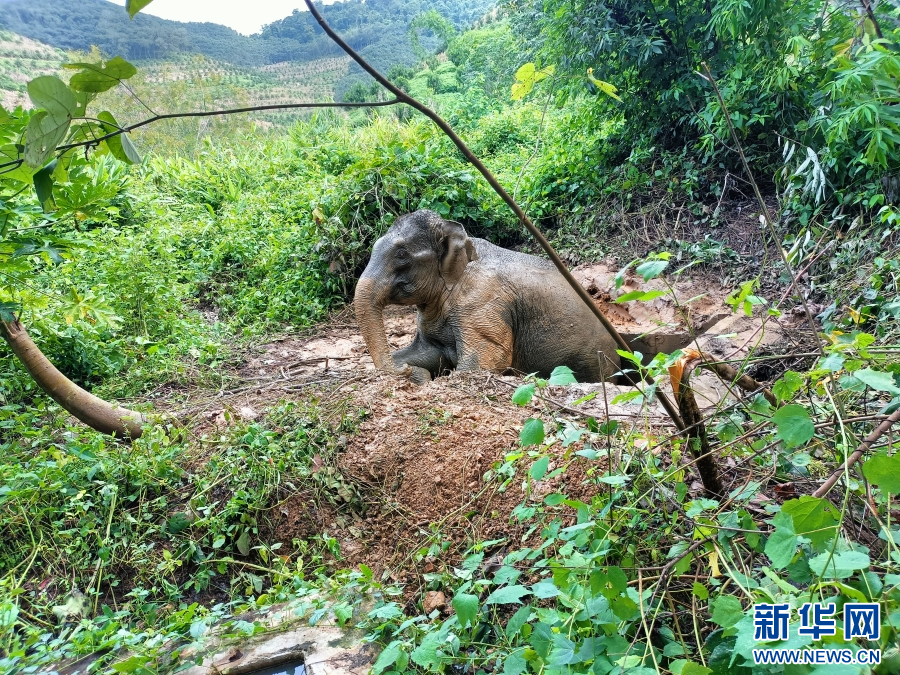 被困野象成功脱困(9月17日摄)。新华网发(许团明 摄)