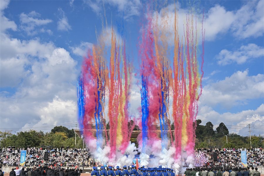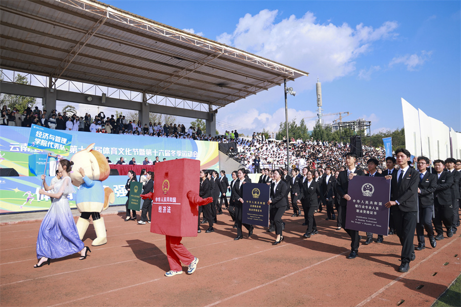 云南工商学院第十六届冬季运动会开幕式(11月20日摄)。