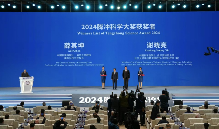 12月6日,2024腾冲科学大奖在2024腾冲科学家论坛开幕式上正式揭晓。经开放提名、同行评议、会议评选,本届腾冲科学大奖获得者分别为中国科学院院士、清华大学教授、南方科技大学校长薛其坤,中国科学院院士、昌平实验室主任、北京大学李兆基讲席教授谢晓亮。