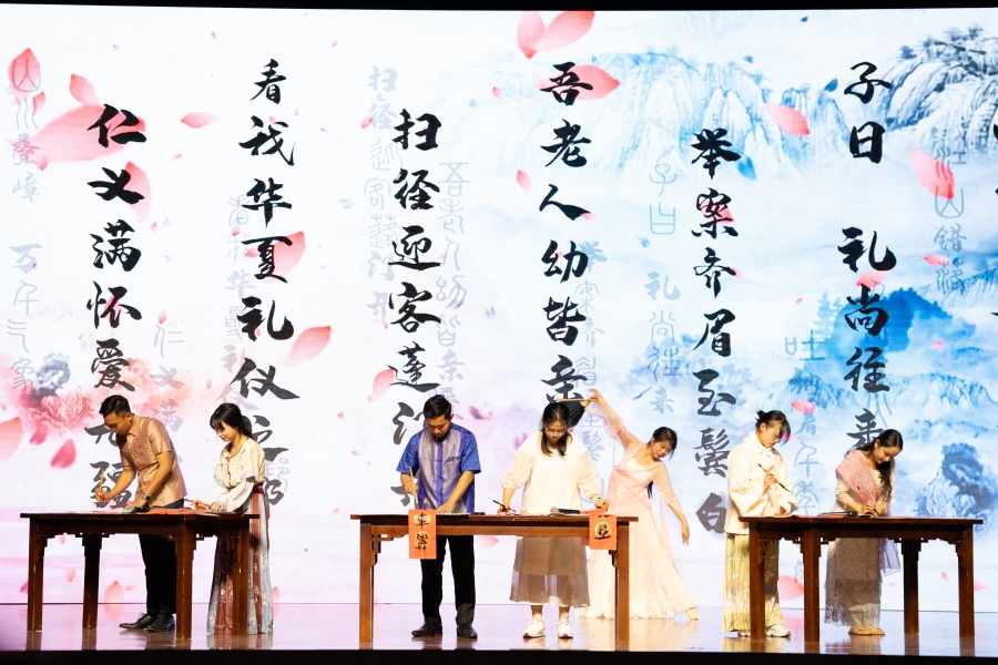 新年晚会上,留学生共同演绎了中文歌曲串烧《彩云之南》《我的歌声里》《相约北京》《我们都是追梦人》。来自不同国家的留学生身着传统服饰登台表演,以歌舞形式展现各个国家的传统风俗和文化特色。(完)(普慧)