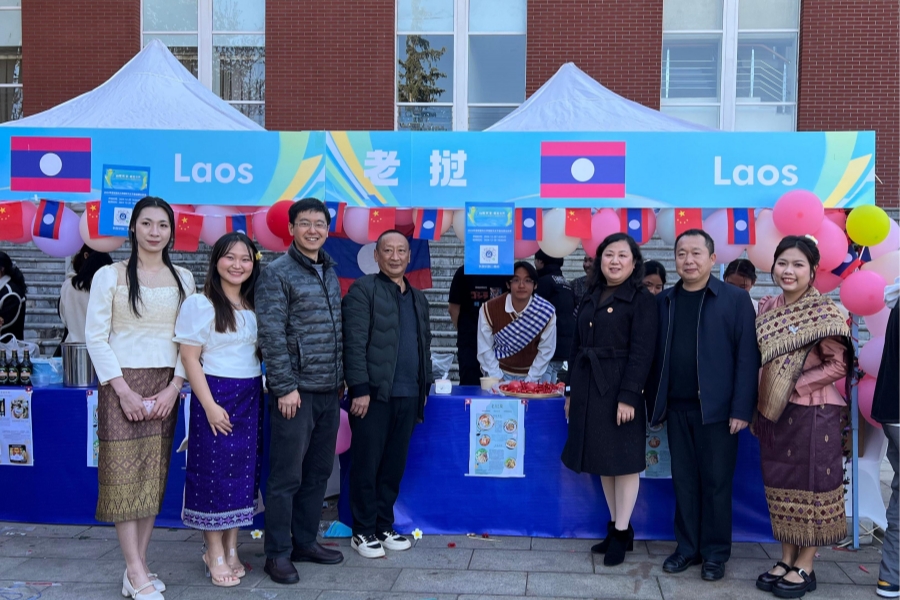 国际文化节上的老挝展台 (12月20日摄)。(昆明医科大学供图)