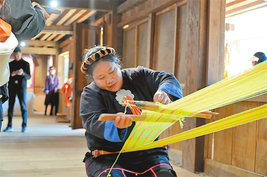 村民正在展示传统文化技艺。