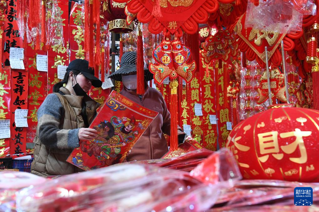 1月22日,在云南省丽江市玉龙纳西族自治县黄山街道上吉农贸市场,市民在选购春联。