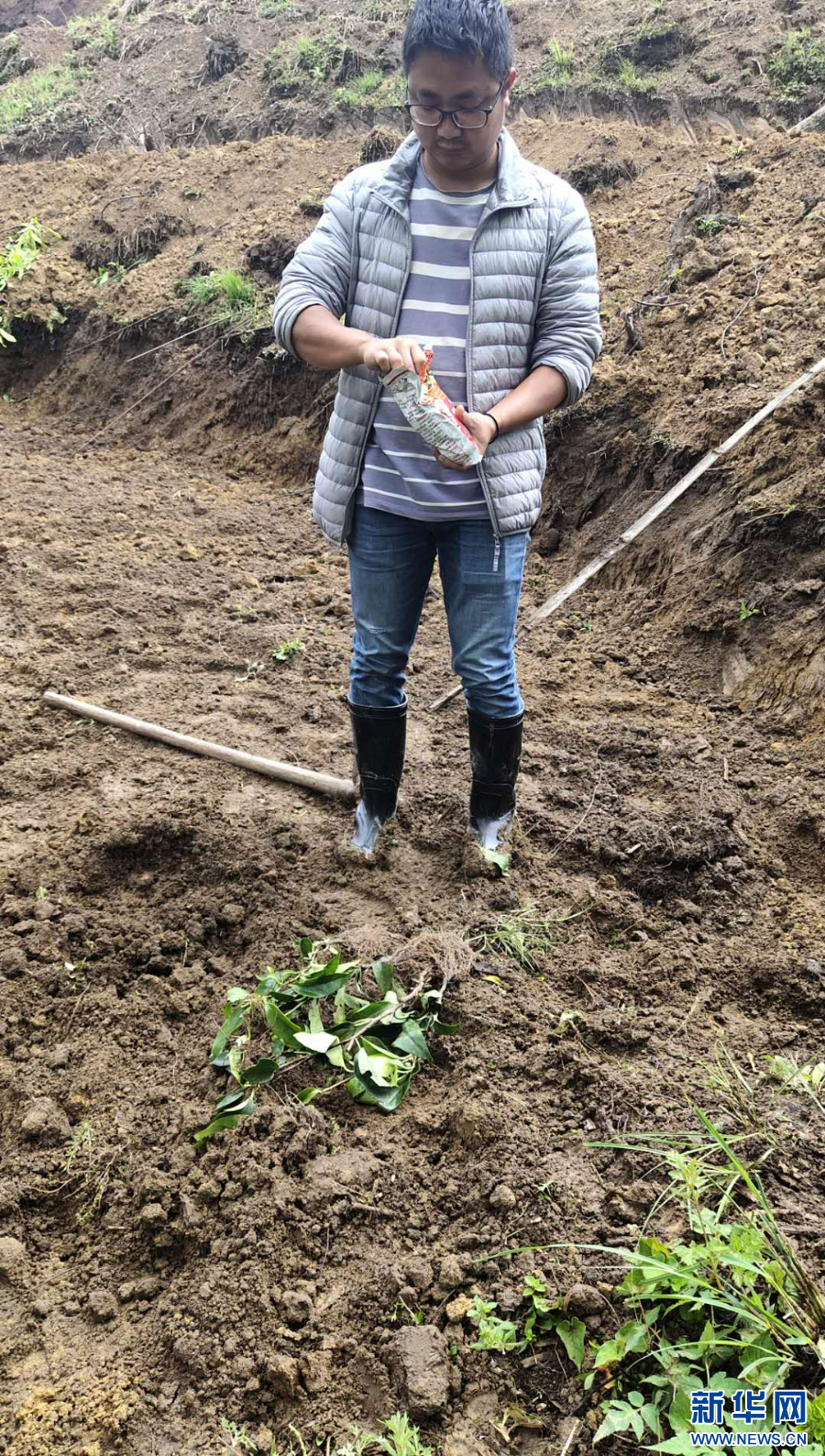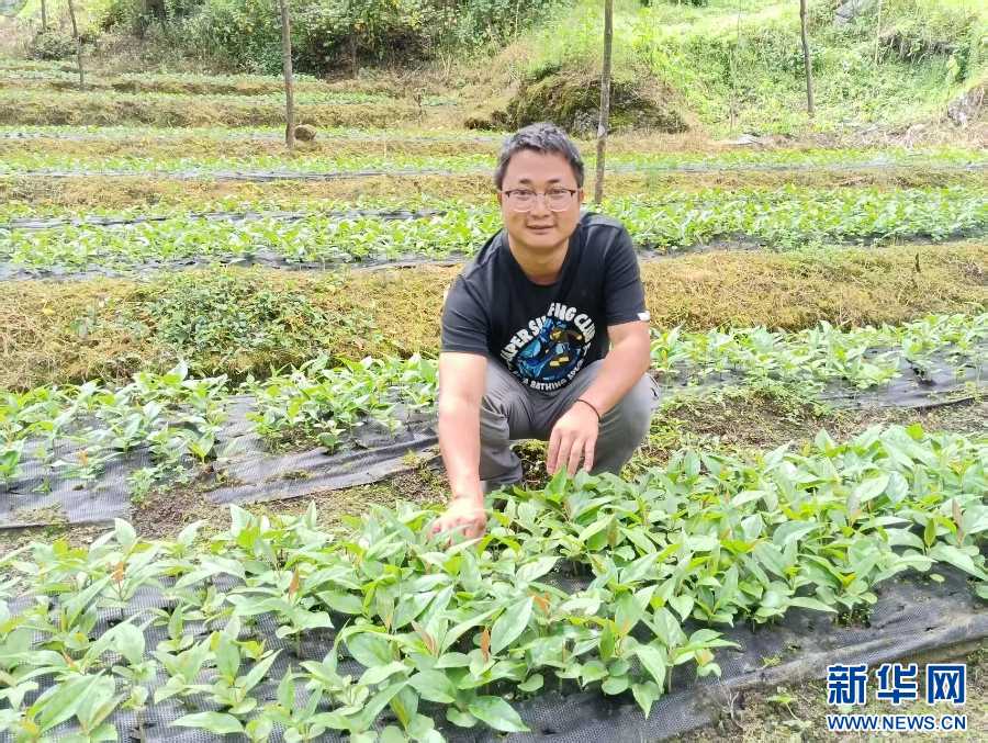 胡兴林在岗房村开展黑老虎育苗试验示范工作(资料图)。新华网发(陈玉明 摄)