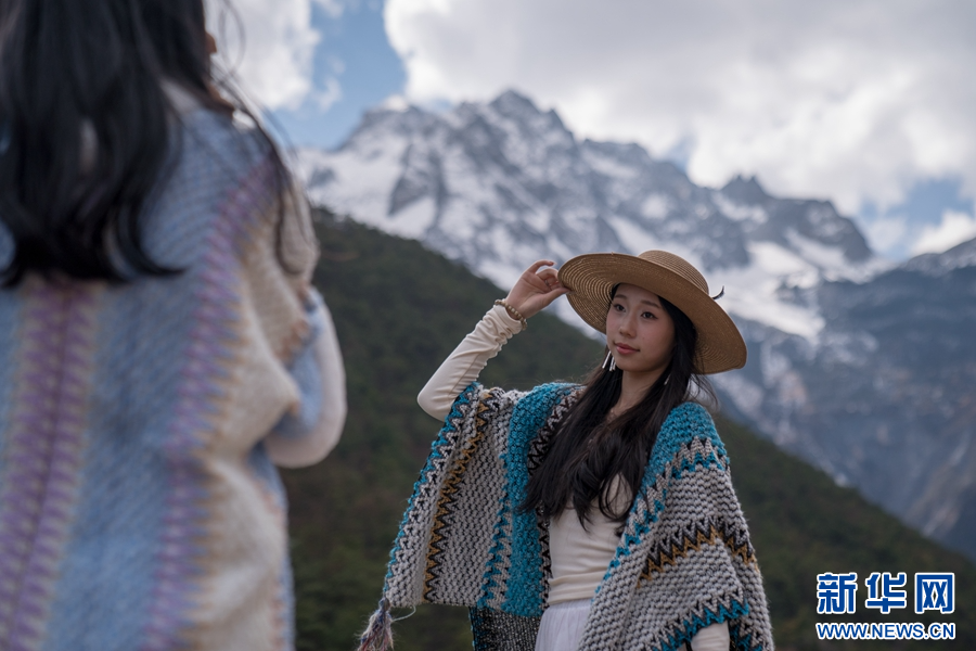 游客在玉龙雪山景区游玩拍照(资料图)。新华社发(彭奕凯 摄)