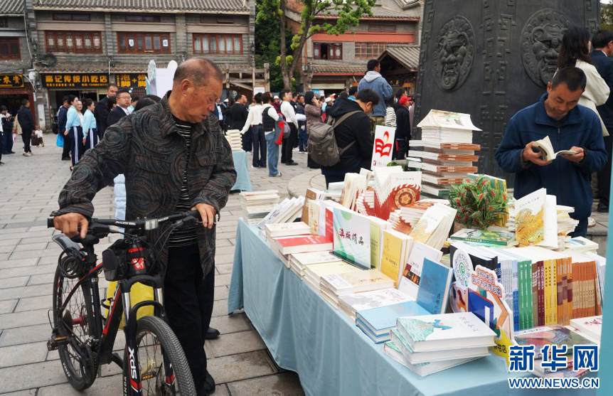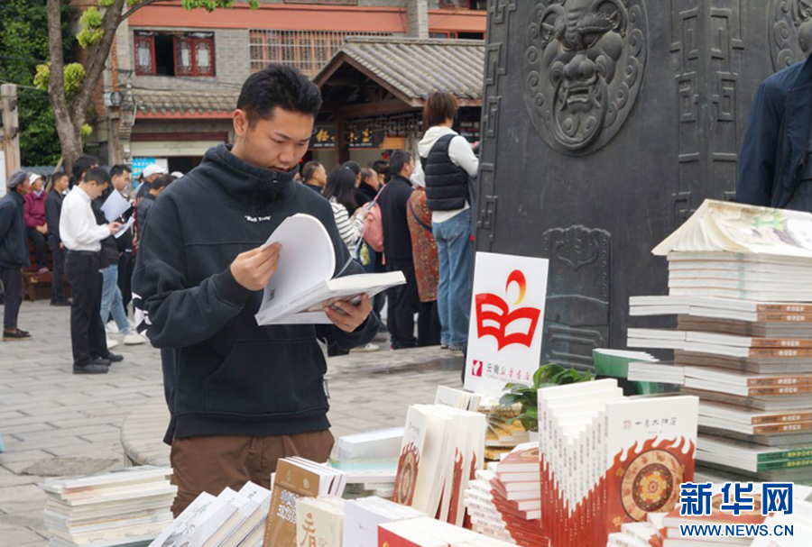 群众正在观看展示的书籍(4月22日摄)。新华网 范芳钰 摄