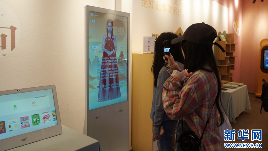 群众观看AI数字人阅读机(4月22日摄)。新华网 范芳钰 摄
