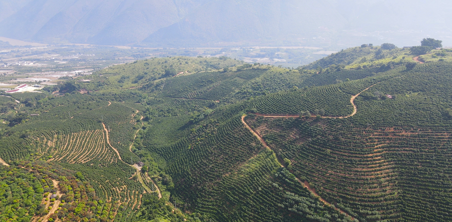 航拍中咖潞江坝产区咖啡地(5月22日摄)。