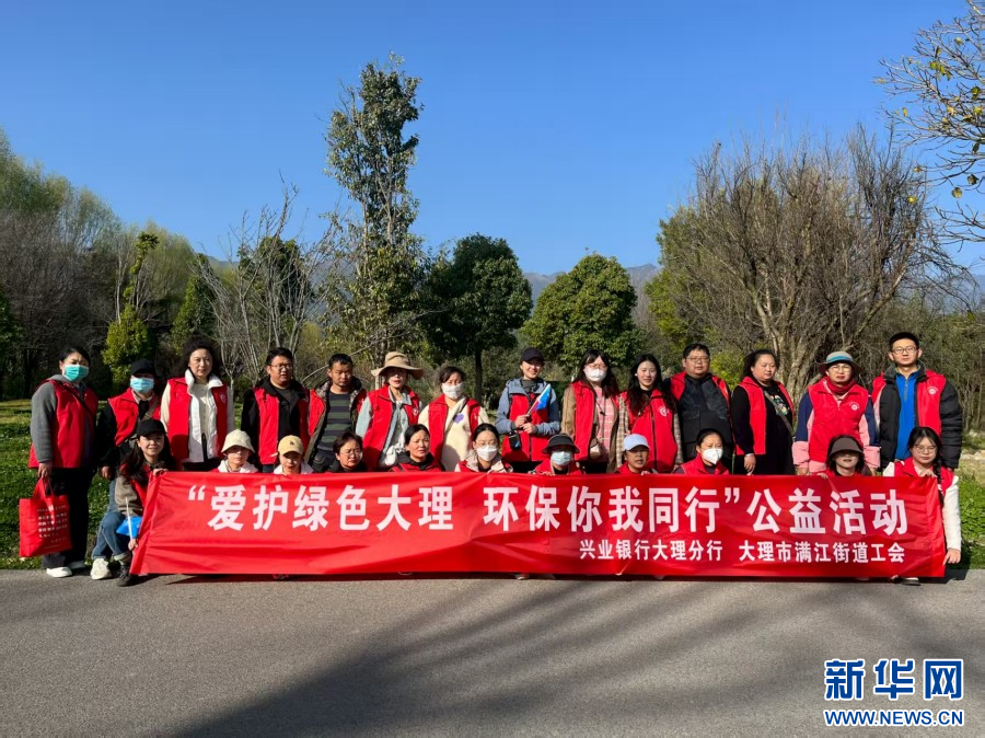 兴业银行大理分行与大理市满江街道工会开展“爱护绿色大理 环保你我同行”公益活动(3月1日摄)。新华网发(兴业银行昆明分行 供图)