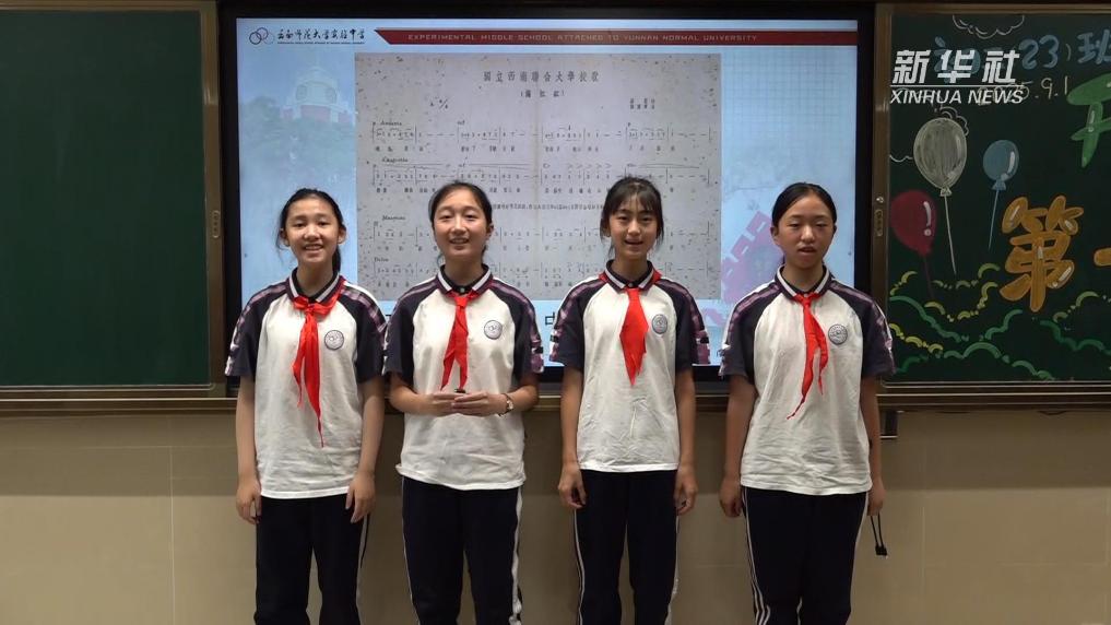 云南师范大学实验中学就建立在西南联大附校的旧址上,今年暑假同学们参加了探访西南联大的研学活动,开学第一课,同学们通过讲故事、唱校歌、演短剧等形式,回顾联大师生救亡图存、誓雪国耻的坚定信念,学习他们在危难面前百折不挠、愈挫愈勇的精神。