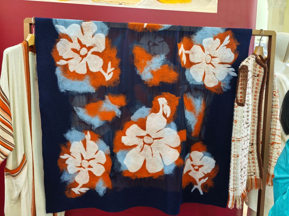 本次亮相上海展销会的马树红毡服饰系列,是传统工艺与现代创新的深度融合之作——由巧家县本土工匠与上海一家服饰企业联手打造,在恪守传统工艺精髓的基础上,巧妙融入现代设计元素。从兼具实用性与设计感的女装外套、手提包,到充满艺术气息的家居饰品,生动诠释了“非遗+时尚”,让古老非遗走进现代生活场景。