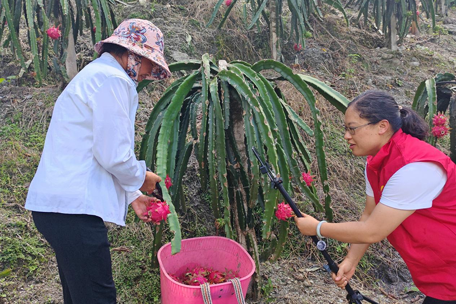 “以前进货得跑县城批发市场,路远还不一定挑到好的。”零售店主王延喜说,“现在直播选货,清清楚楚。这里产出的火龙果果肉饱满、味道清甜,顾客满意,市场欢迎。”