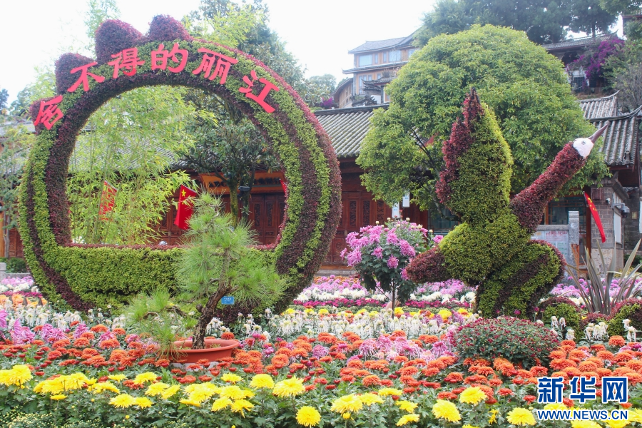 菊花主题造景装点丽江古城的街巷(9月29日摄)。新华网发