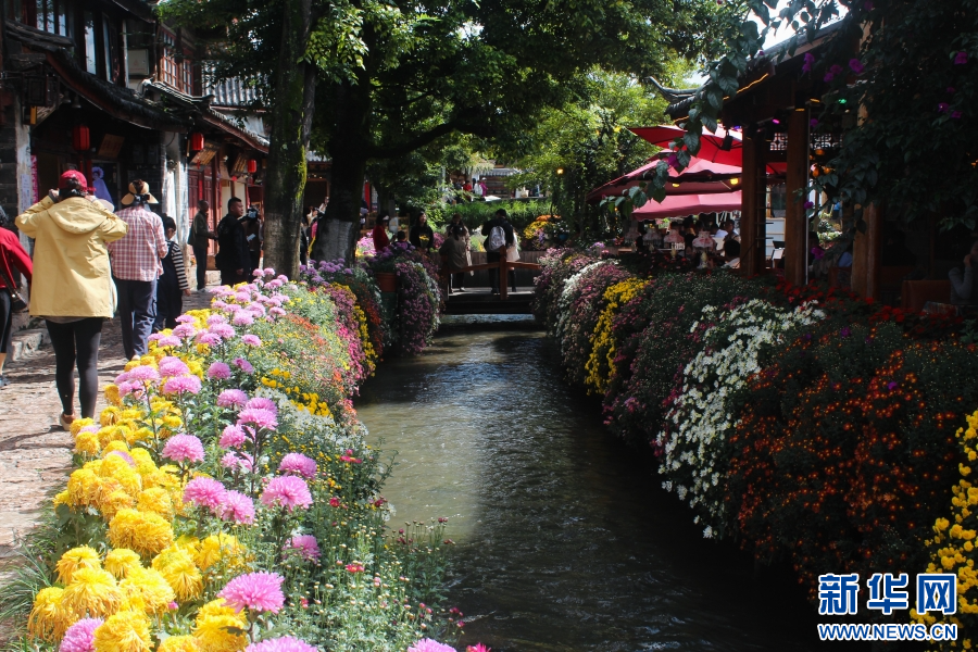 鲜艳的菊花装点丽江古城(9月29日摄)。新华网发