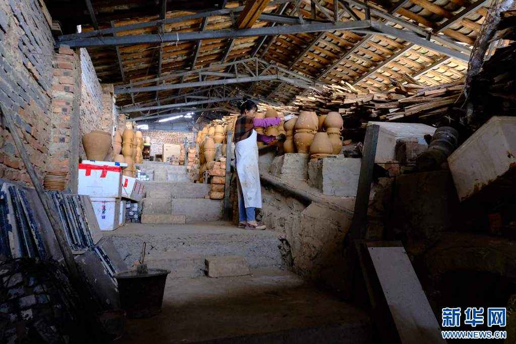 工人整理传统土陶产品(9月29日摄)。新华网发(张洪科 摄)