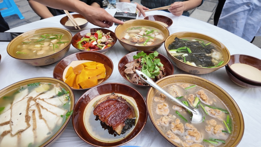 连日来,云南省威信县以非遗美食“九大碗”为主题的长街宴开席。各乡镇的乡土厨师相聚扎西老街,以本地农特产品为原料,精心烹制传统佳肴。这场从丰收节延续至国庆假期的长街宴,为八方游客奉上了一场乡土美食盛宴。