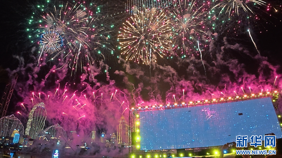 “澜·湄嘉年华”现场绽放的璀璨烟花(10月3日摄)。新华网发(柴静 摄)