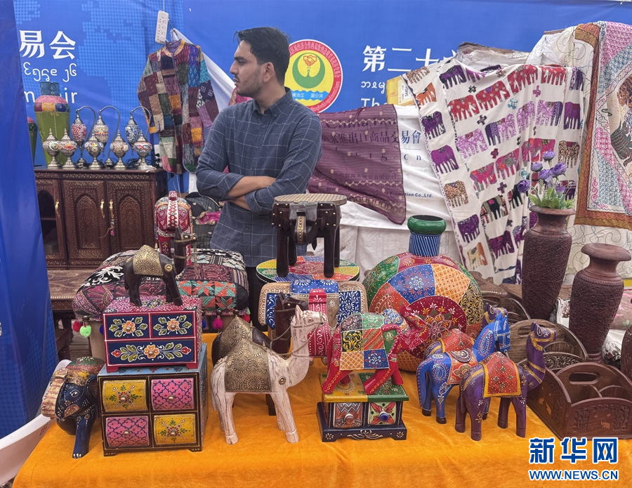 第二十六届西双版纳边境贸易旅游交易会上的各国商品(10月3日摄)。新华网发(柴静 摄)pagebreak