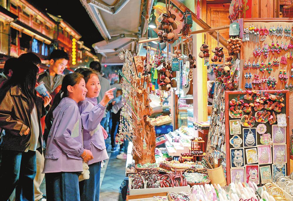 全省商旅文体展深度融合拓展多元消费,打造“情绪消费”新体验新热点。“购在中国·乐购春城”2025昆明国庆中秋促消费活动,以“文化+旅游+沉浸体验”打造商文旅融合消费新场景。玉溪市以“票根经济”,串联“一山三湖”自然景观、民族文化、非遗技艺、特色美食等资源,形成“赛事+文旅+消费”一体化体验。德宏傣族景颇族自治州中缅胞波狂欢节、“大美陇川”目瑙纵歌活动周,实现“展会+文旅+消费”融合。数据显示,红河、玉溪、西双版纳、迪庆零售企业销售额较去年同期分别增长32.2%、24.4%、10.2%、8.9%。
