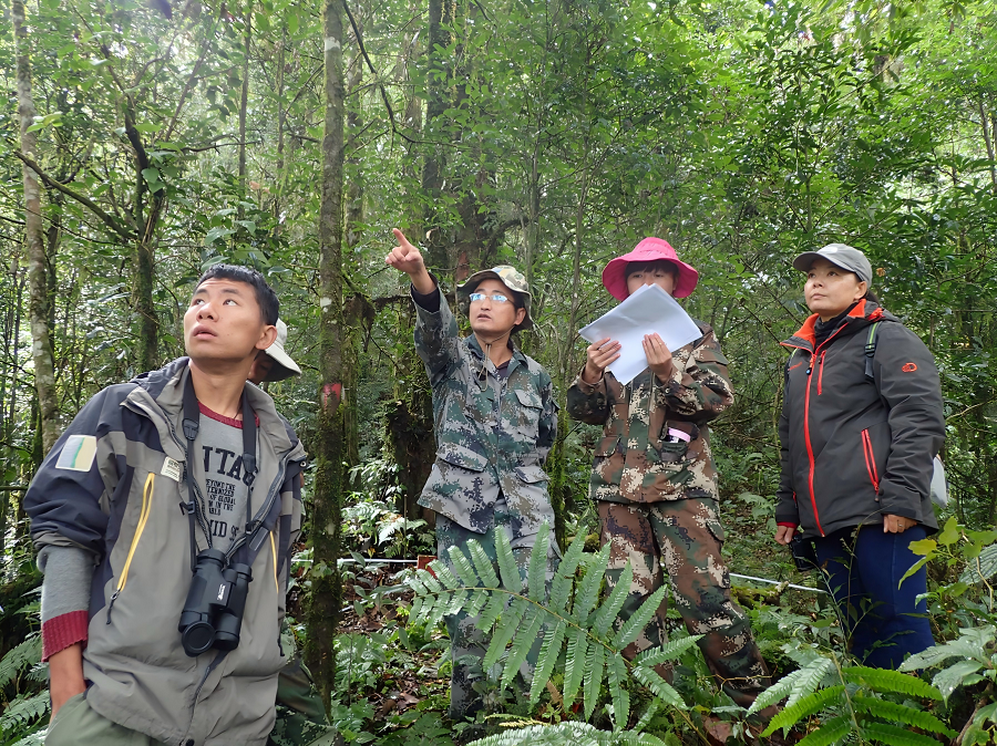 高黎贡白眉长臂猿跟踪观察(资料图)。线正江 摄