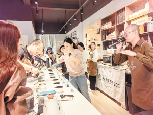 桃源社区的活动则添了几分人文气息。普洱永辉咖啡、台湾质时代咖啡等品牌以及社区“桃源里” 咖啡惊艳全场;肆时伍味复古店相关负责人不仅展示了多枚镌刻着岁月痕迹的名人印章,还带来了珍贵的名人字画作品。“在家门口既能尝到普洱、台湾等地的特色咖啡,还能近距离欣赏名人印章和画作,感觉和这片土地的联系更紧了。” 一名在桃源社区常住的台胞说。