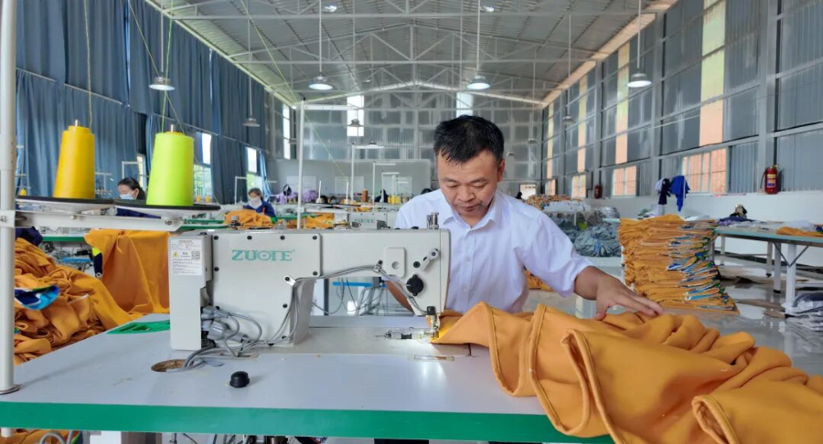 “刚来时连穿针引线都费劲,现在已经能独立完成整件服装的缝制了。”课里村田房小组村民黄涛笑着说道,她已经在服装厂里工作了6个月,家就在附近,走路几分钟就能到,“服装厂的成立也方便了我们,可以照顾家里面,接送孩子,照顾老人,现在收入也不错,感谢他们来支持我们。”