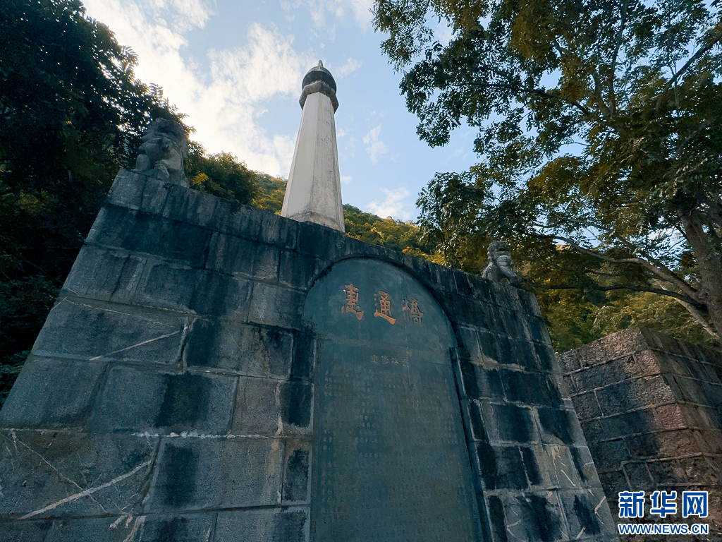 惠通桥旁的碑文(10月30日摄)。新华网发(刘东 摄)