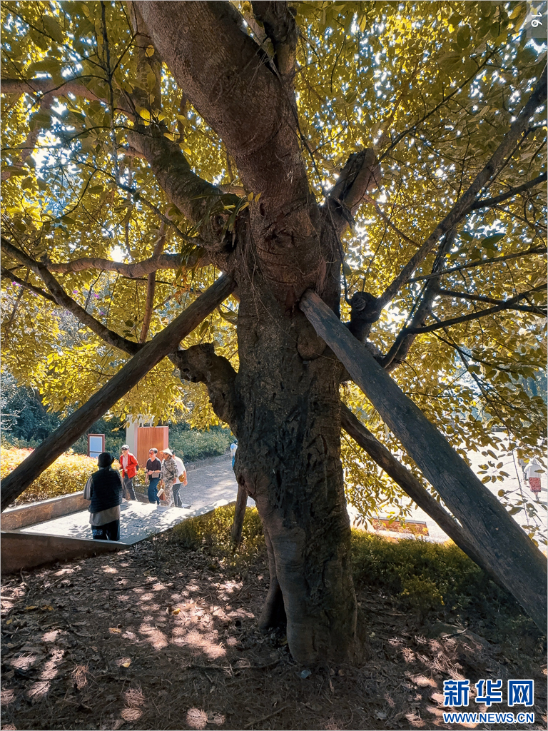 松山战役旧址的“战争见证树”,其树身上布满了弹痕(10月30日摄)。新华网发(刘东 摄)
