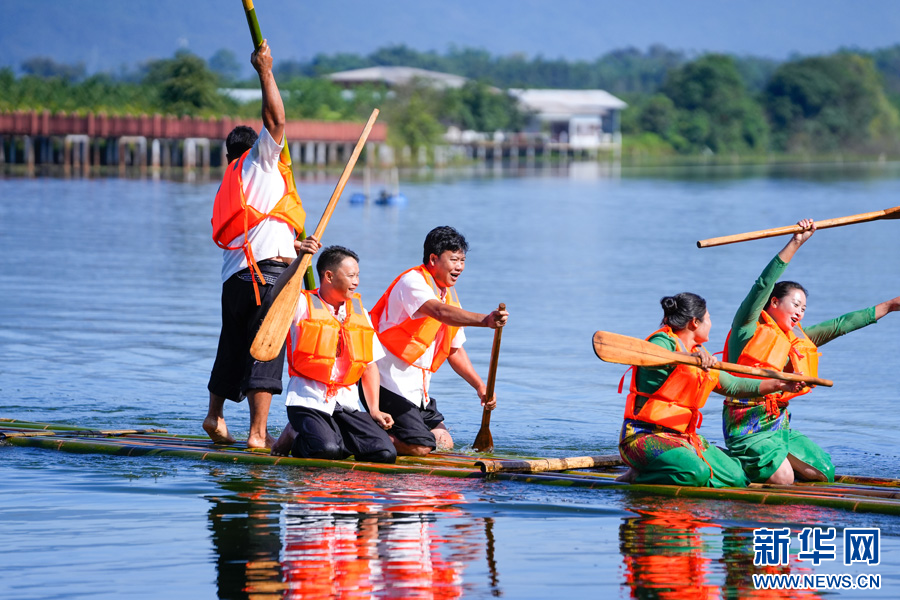 近日,2025年云南省边境幸福村体育嘉年华竹筏、罩鱼比赛在德宏傣族景颇族自治州陇川县弄贯村“半岛田园综合体”开赛。碧波之上,竹筏竞渡展速度;鱼塘之中,鱼罩翻飞比技巧。这场充满乡土气息的赛事,不仅点燃了边疆群众的运动热情,更以热闹欢腾的场景,生动诠释了边境幸福村的活力与风采。(完)
