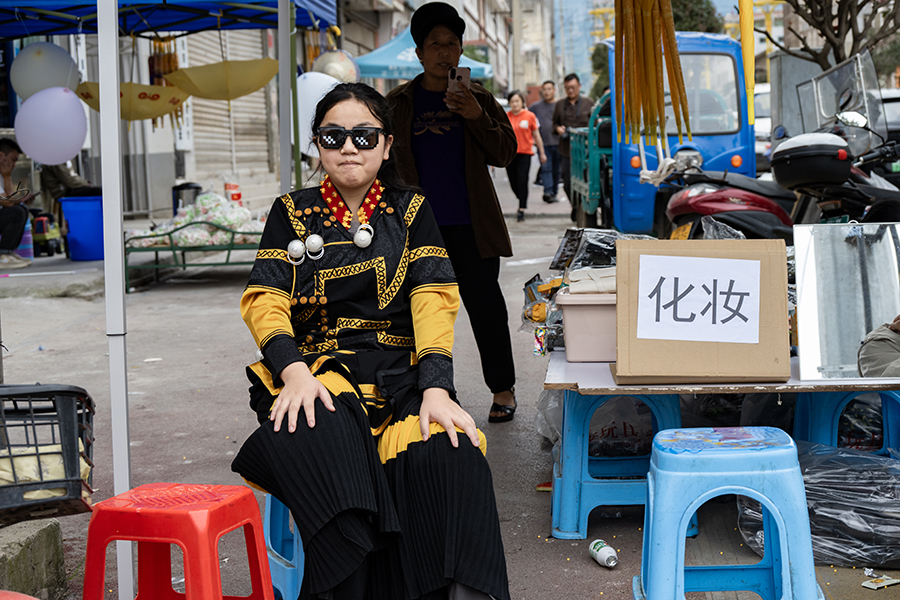凌征国入选摄影作品《新彝族人影像——街头化妆师》(2024年7月18日摄)。