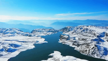 近日,云南昭通大山包黑颈鹤国家级自然保护区迎来降雪,山川被白雪覆盖,雾雪相融,宛如一幅水墨画。(李剑 刘跃武 雷云波)